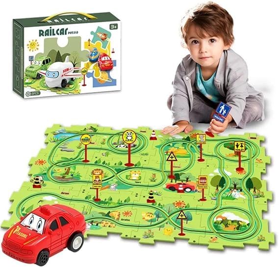 Generic - لعبة بازل اي ال تراك للأطفال مكونة من 6 قطع كبيرة للعب في المدينة مع البحر وغابة الفضاء والديناصور والسيارات