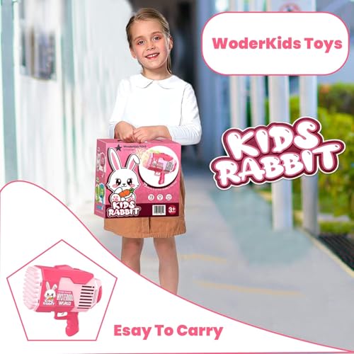 Generic - ماكينة صنع فقاعات على شكل أرنب للأطفال مع 73 فتحة، مسدس فقاعات اوتوماتيكي للأطفال والحفلات والأنشطة الخارجية، وردي