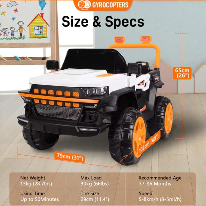 - الفئة العمرية وسعة الوزن: مناسبة للأطفال من سن 3 إلى 8 سنوات، بسعة وزن قصوى تصل إلى 30 كجم. أوضاع للسرعة: مصممة لركوب آمن، تتميز شاحنة الأطفال بـ 3 أوضاع سرعة (منخفضة ومتوسطة وعالية) بسرعات تتراوح من 5 إلى 8 كلم/س. تضمن إطاراتها المتينة قيادة سلسة على جميع التضاريس، بينما يوفر وضع التأرجح حركة هزازة لطيفة ذهابًا وإيابًا لمزيد من المرح.
