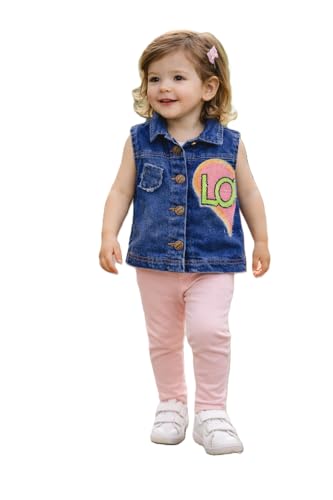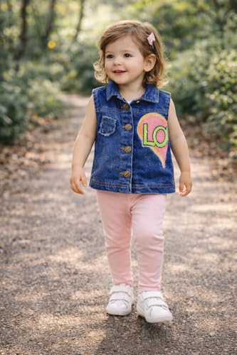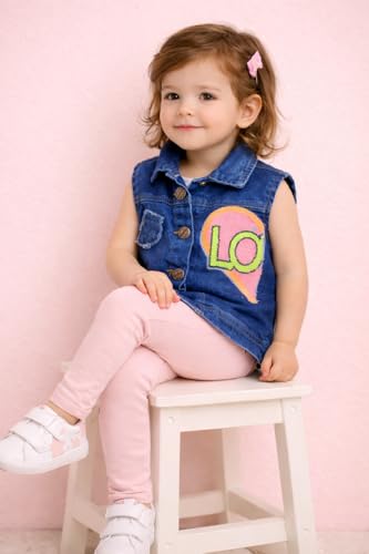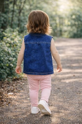 Generic - Kids Sleeveless Denim Jacket, Blue, Colorful Embroidery, Classic Collar Button Down