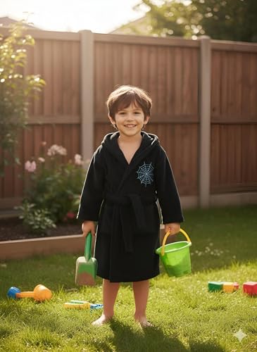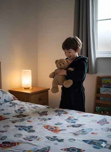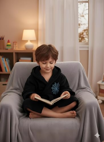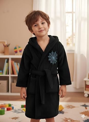 Generic - Kids Snug Robe - Navy Blue with Rocket Pattern, Fleece Material, Hooded with Pockets and Belt for Warmth and Fun
