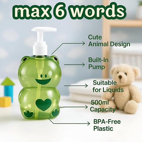 - يتميز موزع الصابون للأطفال بتصميم ساحر على شكل حيوانات مع منحوتات مفصلة، مما يجعله ليس فقط أداة صحية عملية ولكن أيضًا ملحق زخرفي مرح يضيء أي حوض أو مساحة حمام للأطفال.