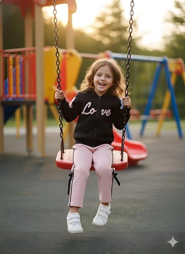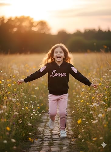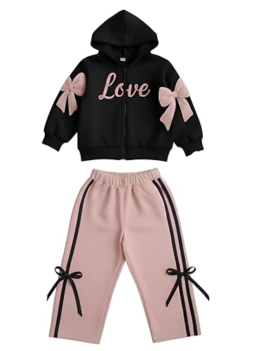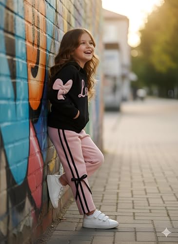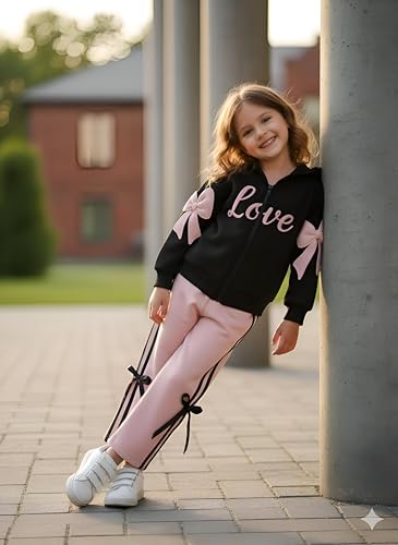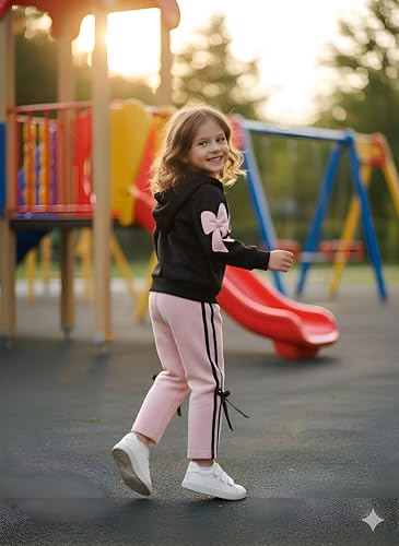 Generic - طقم بدلة رياضية للاطفال - زي رياضي مريح من قطعتين باللونين الاسود والبينك مع سويت شيرت وسروال رياضي للايام النشطة في المدرسة واللعب
