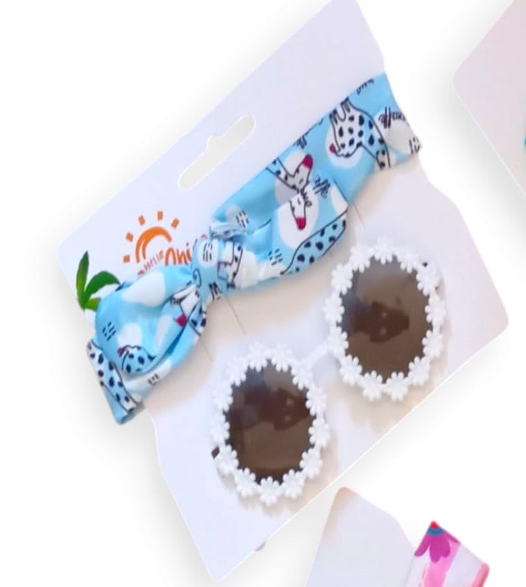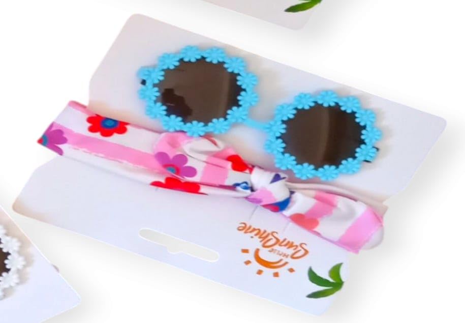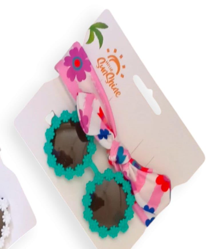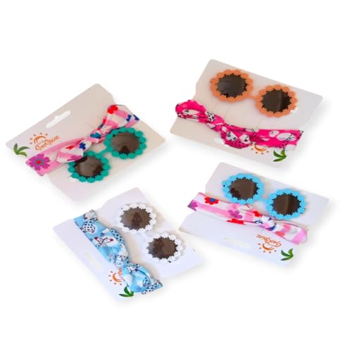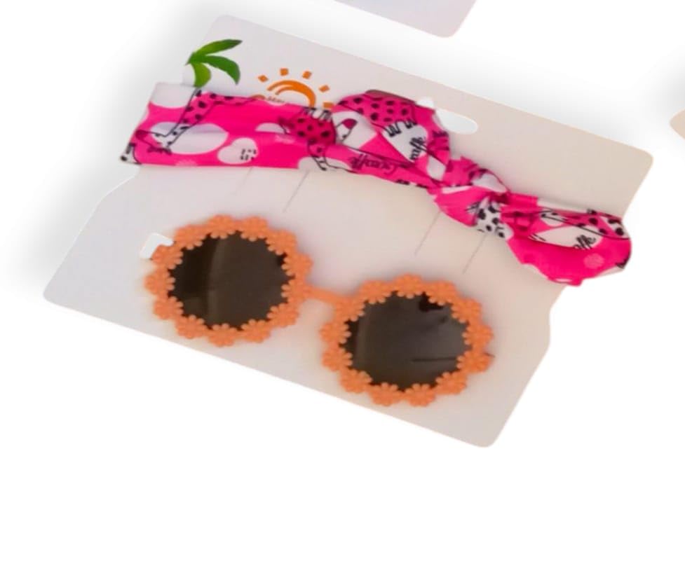 عام - مجموعة نظارات شمسية للاطفال مع اطار زهور وفيونكة شعر مطابقة، مجموعة نظارات صيفية مزخرفة