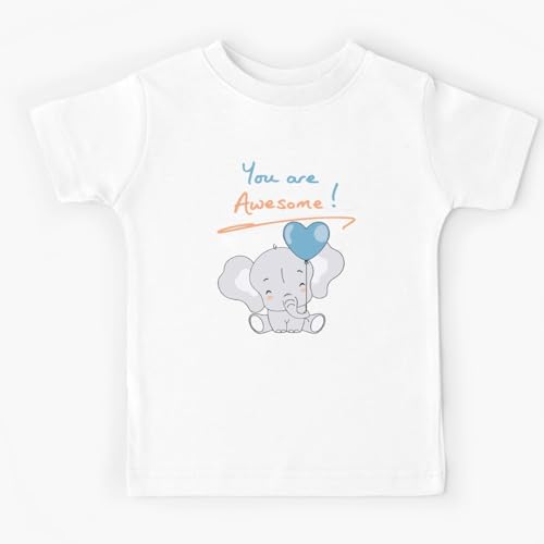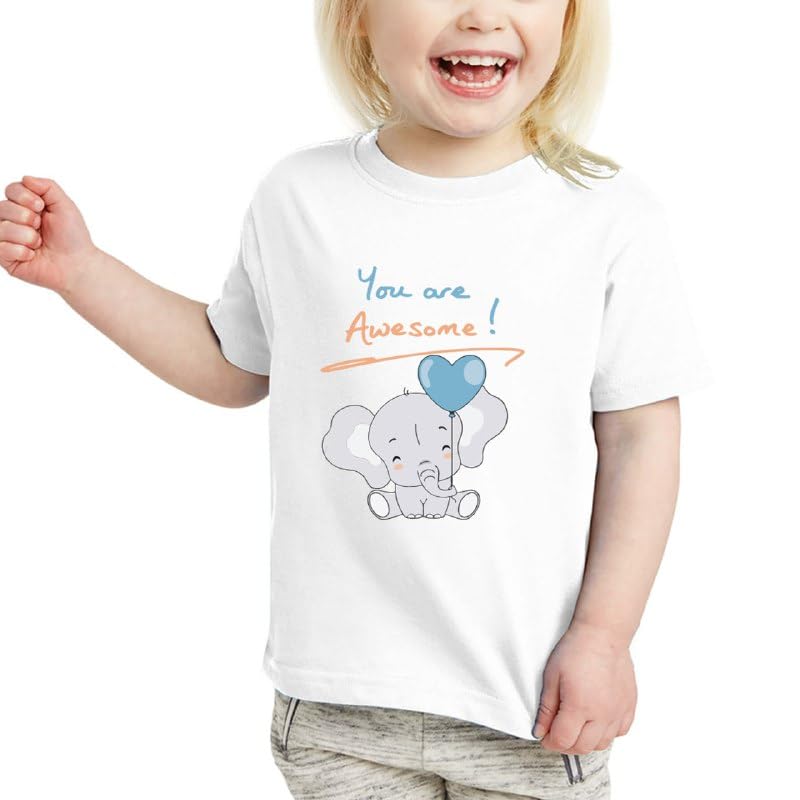 Generic - تيشرت للاطفال - تي شيرت باكمام قصيرة للبنات - ابيض - طباعة على جانب واحد - تصميم فيل - you are awesome- We Print your Gift