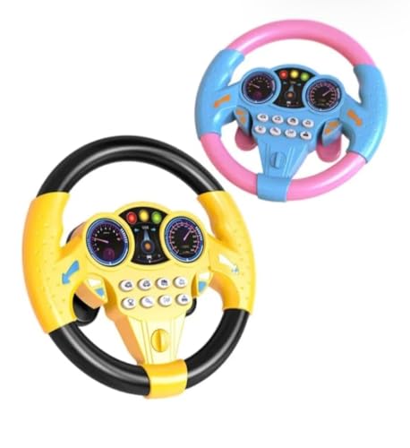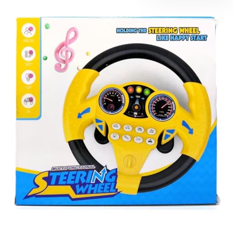 Generic - Kids Toy Steering Wheel, Yellow and Black, with Control Panel and Speed Indicators, Interactive Steering Wheel for Play