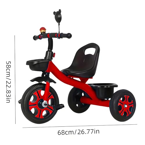 Marked One - Kids Tricycle with Push Handle, 3 Wheels Tricycle for Kids with Adjustable Seat & Backrest, EVA Wheels, Storage Tray – Tricycle for Toddlers Ages 1-5 Years (Red)