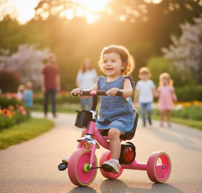 • FUN INTERACTIVE FEATURES: This pink tricycle comes equipped with engaging sound and light features that enhance playtime and keep children entertained during rides