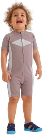 Generic - Kids Unisex Short Sleeve One-Piece Swimsuit, Blue with White Panels, Front Zip Design, Swimming Training Suit