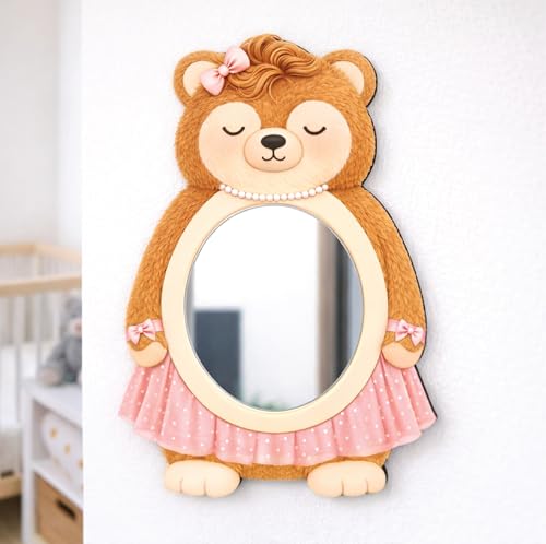 Generic - Kids Wall Mirror Made of High Quality Wood Bear Design for Girls Modern Decor Completely Safe for Toddlers and Unbreakable, Lightweight and Easy to Install Add Style to Baby Room