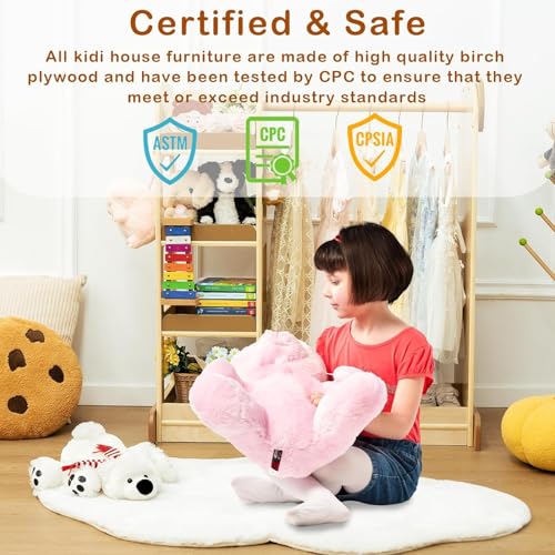 - Safe and Durable Structure: Our kids' dress-up wardrobe is made of birch plywood, CPC-certified, and complies with ASTM+CPSIA standards. It has rounded edges and a smooth surface to keep children safe in the art room, kindergarten, daycare, or classroom