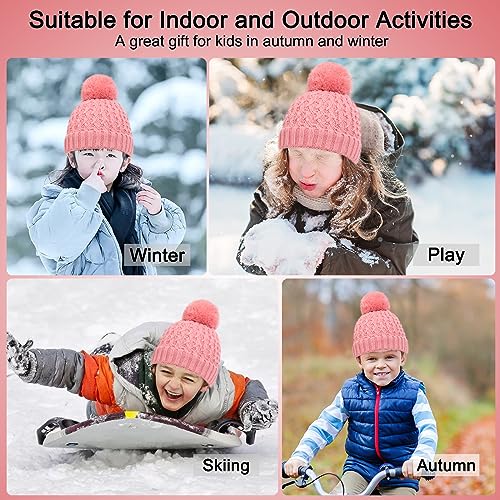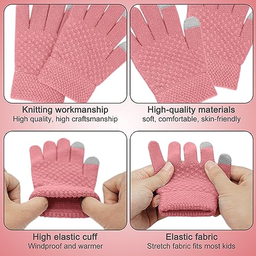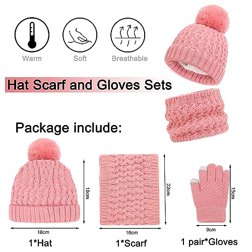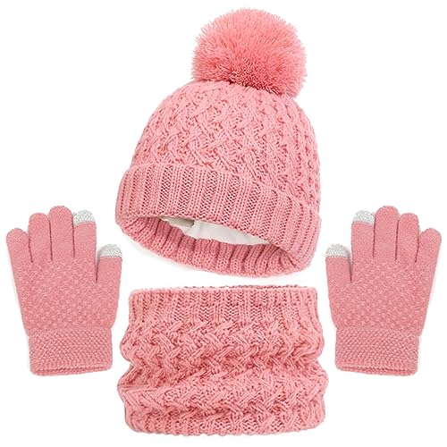 Enwokran - Kids Winter Beanie Hat Scarf and Touchscreen Gloves Set,Fleece Lining Beanie Hat Knit Gloves Neck Warmer for Children 2-8