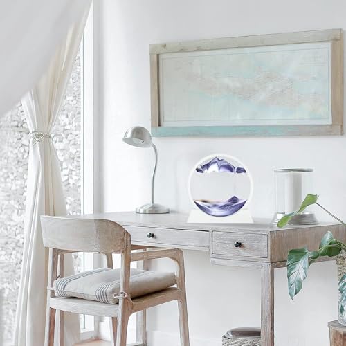 KIDSZONE - لوحة رمال سائلة متحركة فنية، صورة زجاجية دائرية ثلاثية الأبعاد لعرض الرمال في أعماق البحار لتزيين سطح المكتب والمنزل وديكور العمل من كيدز زون (أبيض، إطار أرجواني)