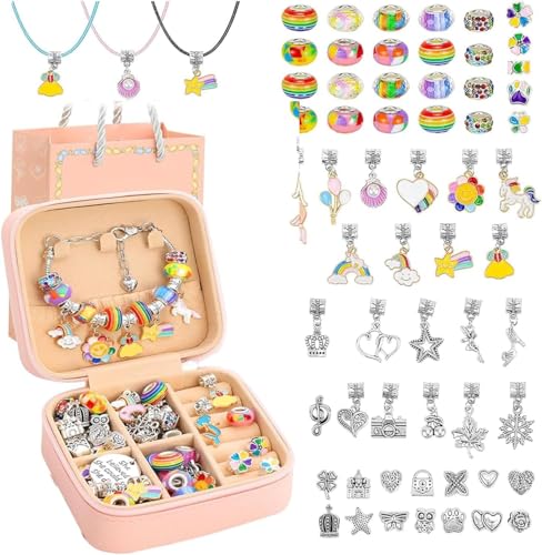 KIDSZONE - KIDSZONE Charm Bracelets 35 pcs Making Kit for Girls, DIY Craft, Jewelry Gift Set for 6-12 Year Old Female, Present (Pink)