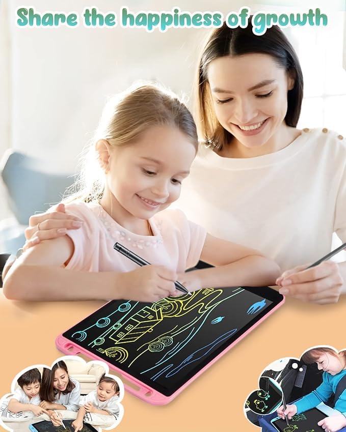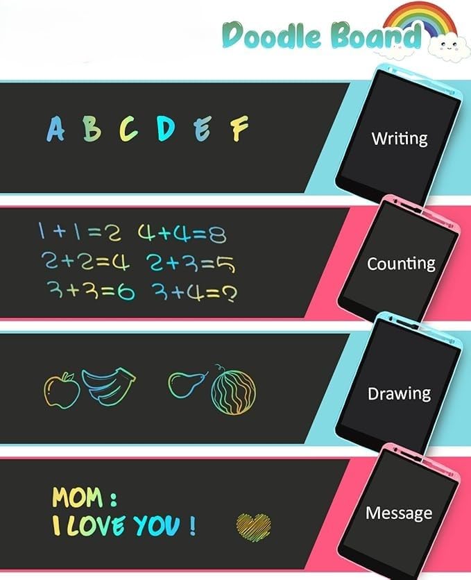 - 🎨 Multi-Color Drawing Experience: The pressure-sensitive LCD screen creates lines of varying thickness and multiple vivid colors, giving children a real pen-on-paper feeling and inspiring their creativity with bright, eye-catching doodles.