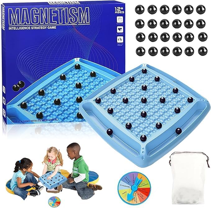 KIDSZONE - KIDSZONE Magnetic Multiplayer Learning Game – Portable Magnetic Strategy Board with Stones | Educational Family Game for Kids & Adults