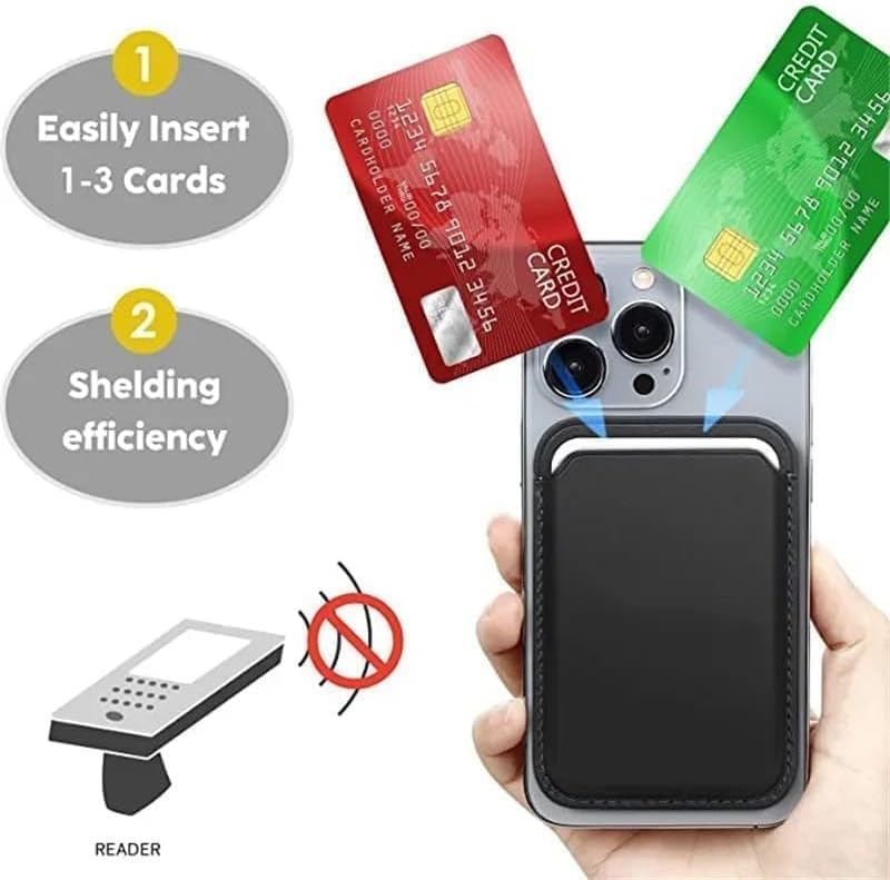 KIDSZONE - KIDSZONE Stronger Magnetic RFID Leather Magnetic Card Holder for iPhone 16 Series, Mag-Safe Accessories Stick on Series of iPhone 16/15/14/13/12 and Pro/Promax (Black)