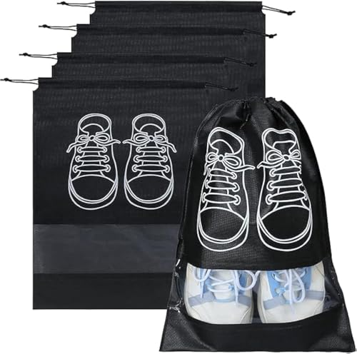 KIDSZONE - KIDSZONE Travel Shoe Bag Set Large with Transparent Window Drawstring Dust-Proof Non-Woven Shoes Storage Bags for Men Women Daily and Travel Use (Blue, Pack of 5)
