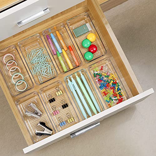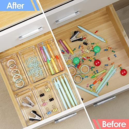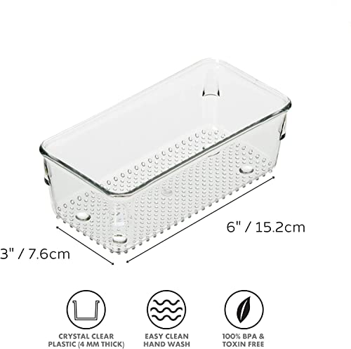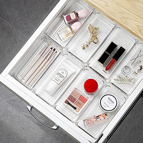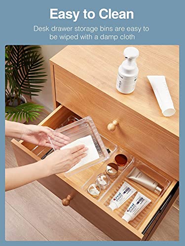 Kienlix - Desk Drawer Organizer Trays Various Size Bathroom Organizer Storage Tray for Makeup, Jewelries, Utensils, Bedroom Dresser, Office and Kitchen-Clear (4pc Small Rectangle)