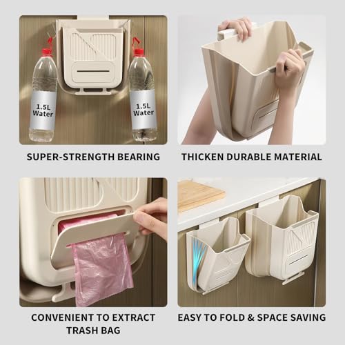 - EASY TO INSTALL & USE -Simply attach the folding trash can to any cabinet drawer or door. Say goodbye to constantly opening and closing cabinet doors with wet hands while preparing fresh food. It's a convenient alternative to under-sink bins!