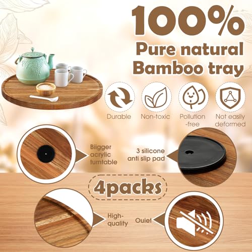 - Ideal Cooking Assistant: the package includes 4 aesthetically pleasing kitchen acacia wood organizers, ideal for conveniently storing seasonings like salt, vinegar, pepper, and olive oil near your cooking area; It can also function as a decorative piece for your tables, holding items such as napkin holders, honey jars, cinnamons, sugars, and even flower vases; Particularly, these rotation trays are designed to keep your tables tidy and organized