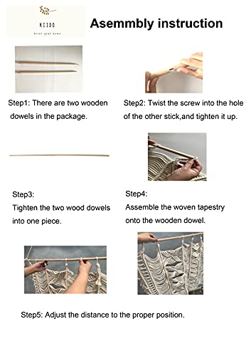 - ♥♥Material: Kiido Macrame Wall Hanging is made of 100% Natural Cotton. There are two assembly wood sticks for hanging. The wooden tree branch in the picture is not included in package, as it is a photography prop we found from the forest. You can find one if you need.