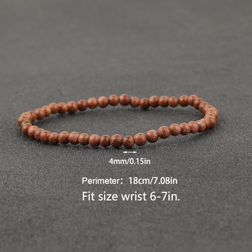 KIKILA - KIKILA 4mm Mini Gemstone Energy Bracelets Crushed Stone Beaded Bracelet Natural Stone Charm Beaded Small Couples Bracelets for Women, 6in-7in, Stone