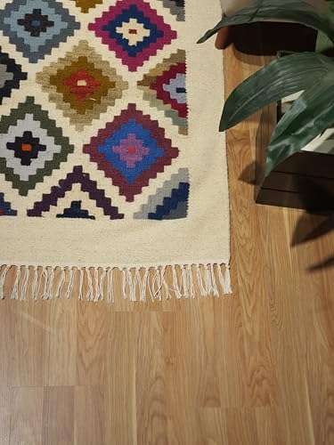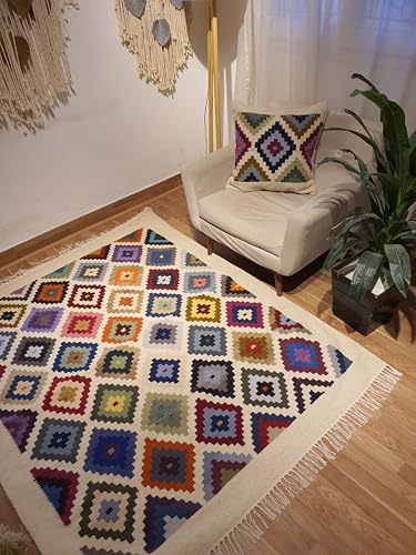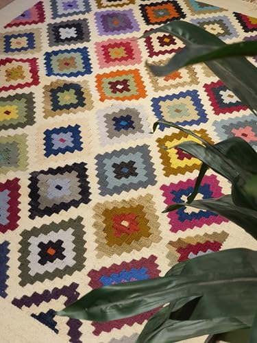 Kilim Studio - كليم مقاس 1.2 × 1.8 متر متعدد الألوان مع قاعدة اوف وايت من كليم ستوديو