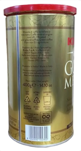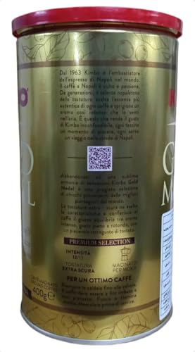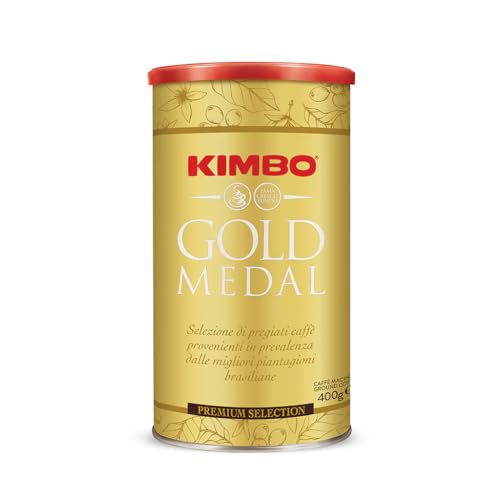 - كيمبو جولد ميدال هي قهوة مطحونة فاخرة من كيمبو، تشتهر بتوازنها المثالي بين الرائحة القوية والنكهة الغنية. يتم تحضيرها من مزيج من حبوب أرابيكا وروبوستا المختارة بعناية، وتشتهر بتحميصها الداكن الذي يعزز نكهتها.