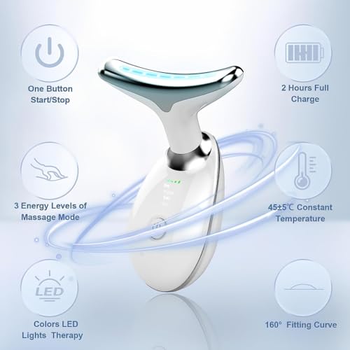 - 【Multi-function Beauty Mode】Enjoy 3 LED light modes: red, yellow, blue, cyan, green, purple, white. It can provide luxurious massage not only for your face and neck, but also for your arms, shoulders, etc. Lift loose skin, relax tense muscles, and show a younger appearance.