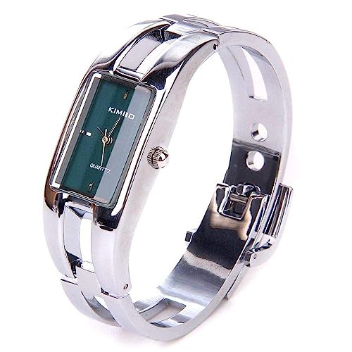 Kimio - ساعة يد للنساء من كيميو كوارتز بسوار بنمط سوار مفتوح مذهل للسيدات بلون فضي