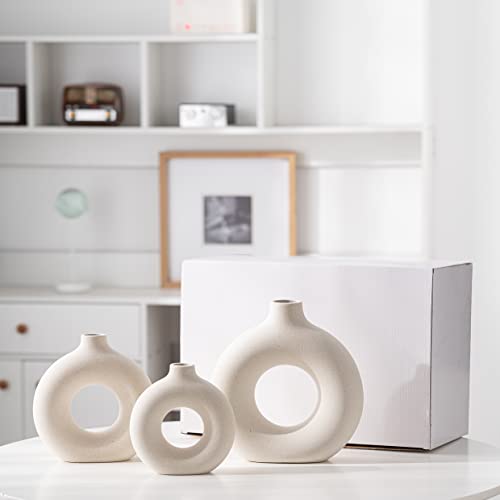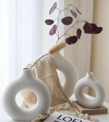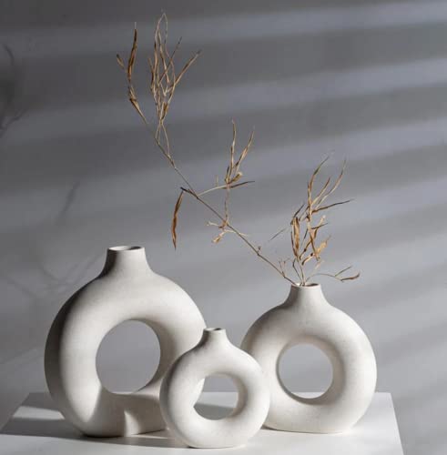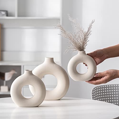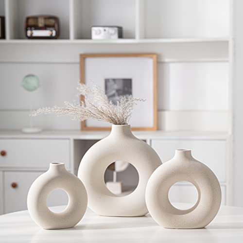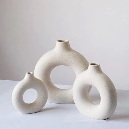 kimisty - Kimisty Ceramic Donut Vase Set 3, Off White Pampas Vases for Decor, Hollow Vase, Nordic Minimalist Decor for Weddings, Dinner Table, Party, Living Room, Bedroom