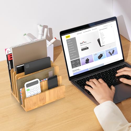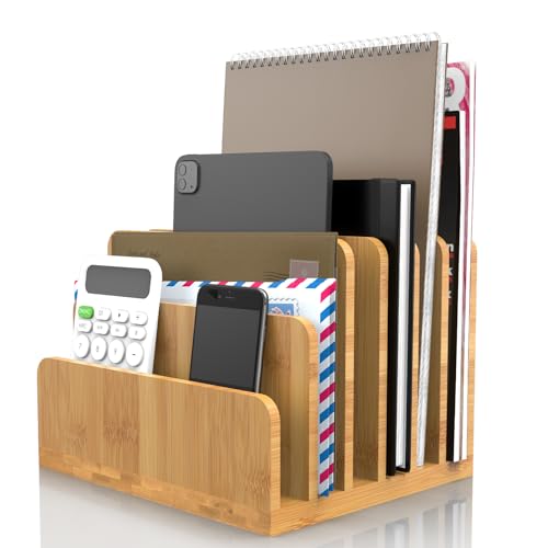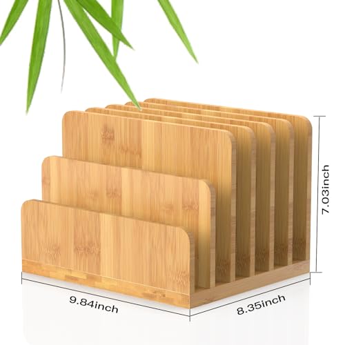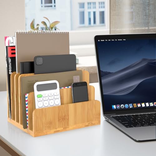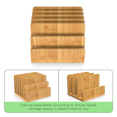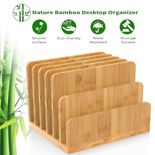 KIMSOFUNNY - منظم ملفات مكتبي مصنوع من الخيزران من كيمسوفني، منظم اجهزة اللابتوب، 6 فتحات