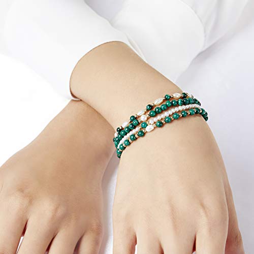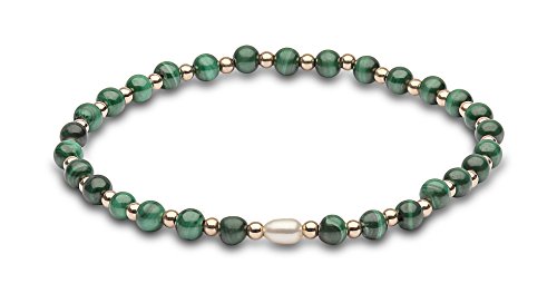 Kimura Pearls - كيمورا سوار لاكي من الذهب الاصفر عيار 9 قيراط المالاكيت ولؤلؤ المياه العذبة