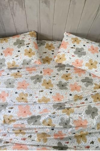 - Modern Floral Pattern: Elegant design with peach, beige and gray flowers on a polka dot white background adds flair to your bedroom