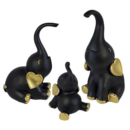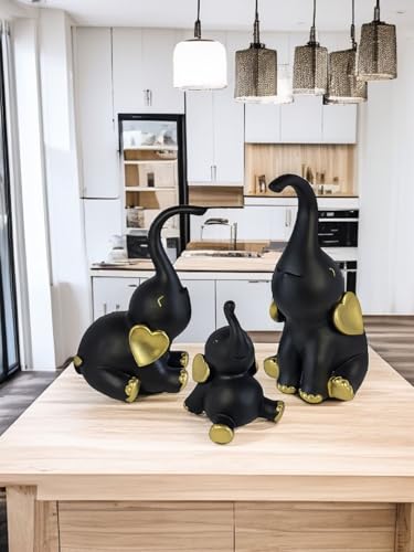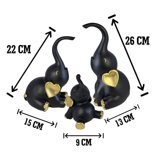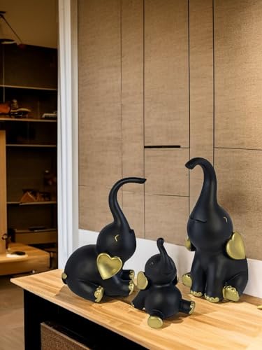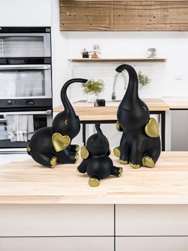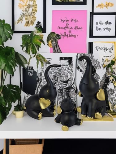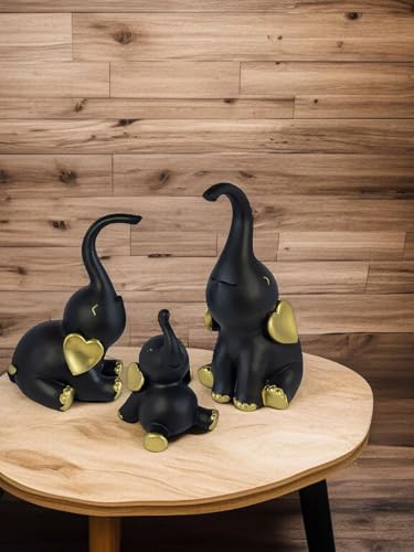 Generic - طقم تماثيل ديكور مكون من عدد 3 فيل بمقاسات وأوضاع مختلفة - ديكور فاخر بلمسة فريدة للمنزل والمكتب من البورسيلين من الكينج ستورز (أسود ذهبي)