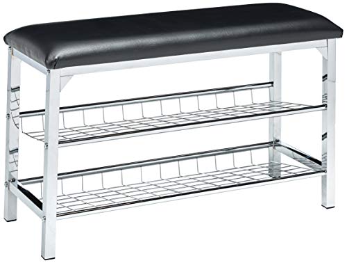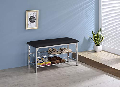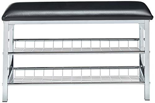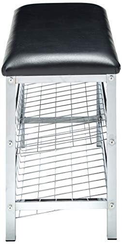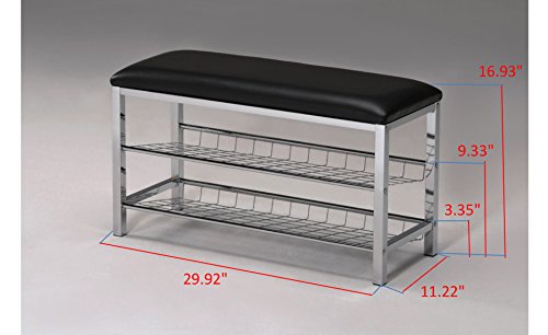 - Kings Brand Furniture - Dana Chrome Shoe Rack Organizer & Bench, Black