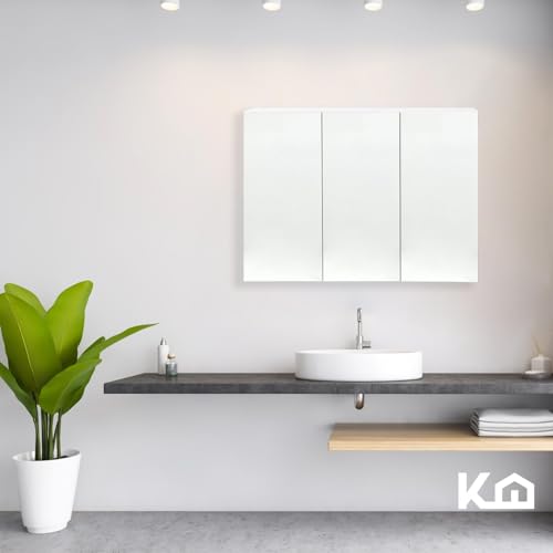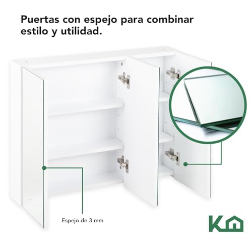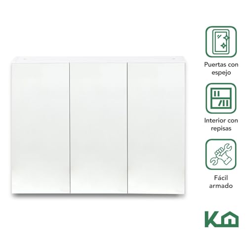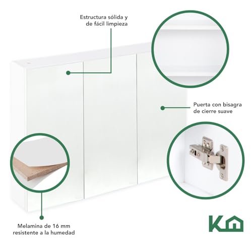 Kingshouse - Kingshouse | Medicine Cabinet with Mirror for Bathroom with 3 Doors - White - Organizer Cabinet with Shelves - (LxWxH) 75x14x60cm - Melamine 16mm - Armable Home Furniture