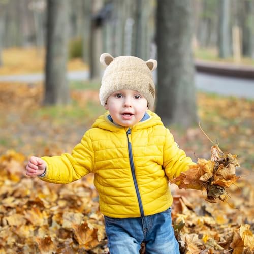 Kingsiely - Baby Hat, Kids' Knit Hat, Cute, Bear Cap, With Ears, For Babies, Girls, Boys, Kindergarten Commutes, Outings, Windproof, Cold Protection, Warm, Spring, Autumn, Winter, Present, One Size Fits