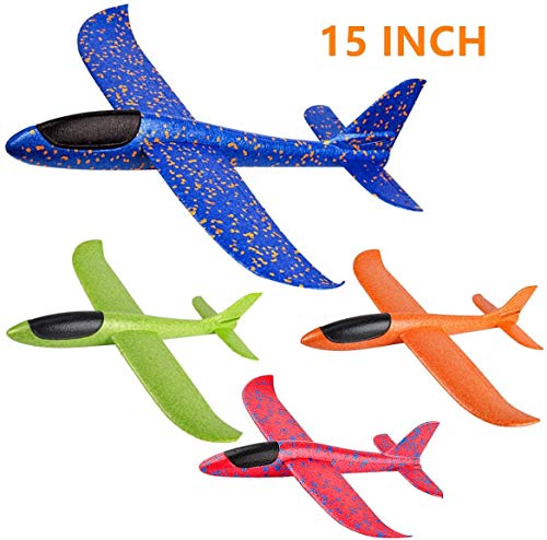 zain - KINGSOO Glider Plane for Kids Valentines Gifts for Classroom, 4 Pack 15 inch Glider Airplanes Foam Flying Airplane Kit for Outdoor Sports Garden Yard Playing