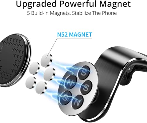 Kinizuxi - Mobile Phone Holder Car Magnetic Ventilation, Universal Mobile Phone Holder Car Accessories with 5 Strong Mobile Phone Car Holder Compatible with iPhone Samsung Huawei (Black)