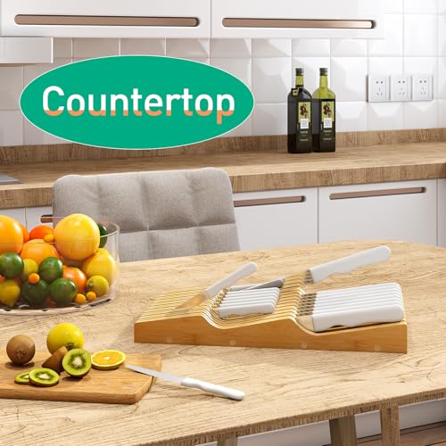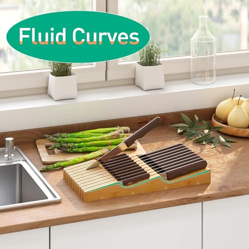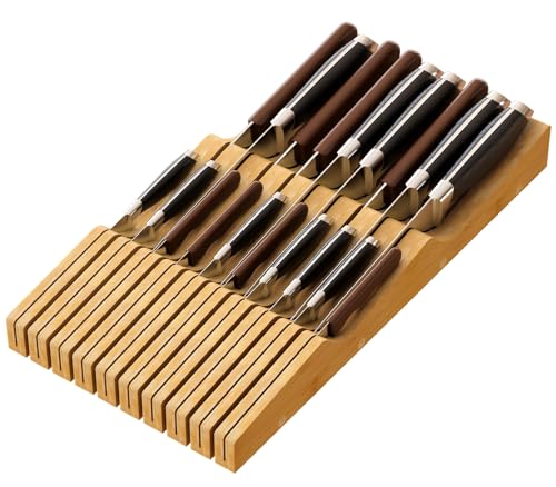 kiplant - Drawer Knife Block Organizer, Bamboo Wood Drawer Knife Organizer