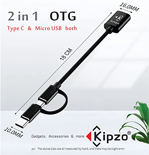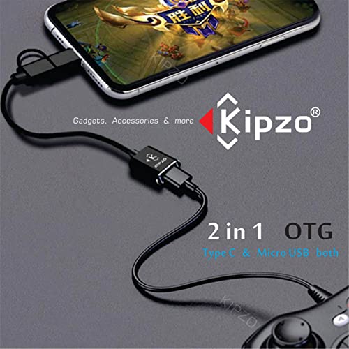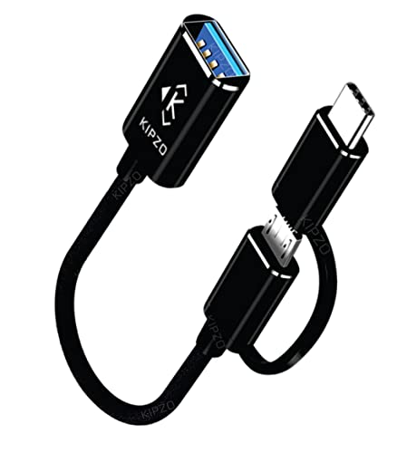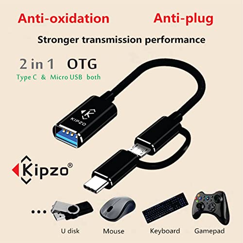KIPZO - Black USB A OTG Adapter 2 in 1 Cable Type c to Micro USB OTG Adapter USB 3.0 to Type-c OTG Cable Male-Female Adapter hub Converter Connector for Android Mobile Phones pendrive Mouse.