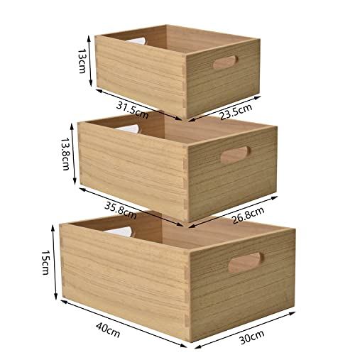 KIRIGEN - كيريجن مجموعة اقفاص خشبية متداخلة كيريجن بمقابض مكونة من 3 قطع - حاوية تخزين خشبية لديكور المنزل الريفي/ سلة صينية دوارة سهلة الحمل/ صناديق ديكور طبيعية