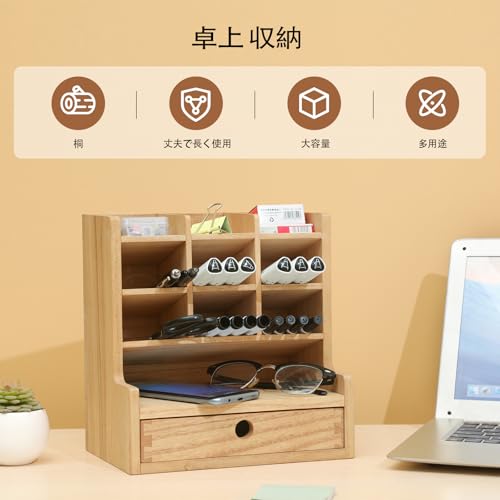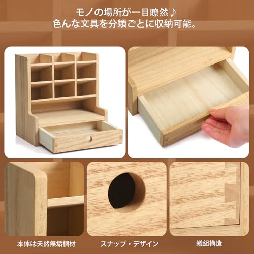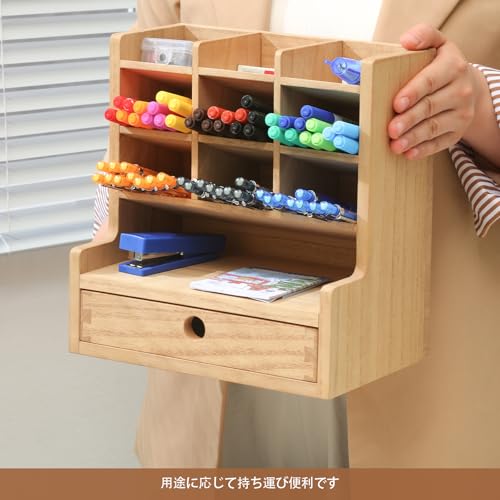 KIRIGEN - KIRIGEN TQ-BJH9G-NA Pencil Case, Pen Storage, Slim, Compact, Portable, Desk Rack, Pen Holder, Stationery Storage, Wooden Drawer, Natural