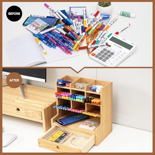- Large storage space and convenient drawers help you keep your desk neat and organized. Large capacity: Large main body can hold more than 50 pens and can store various types of pens in one place