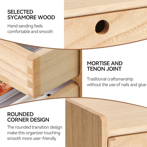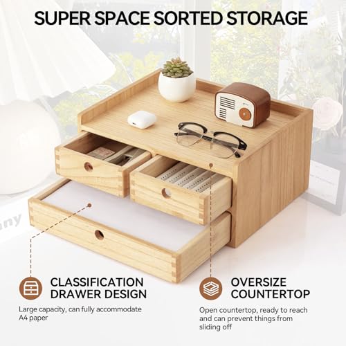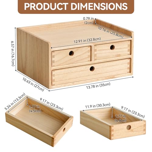 KIRIGEN - KIRIGEN Wood Desktop Organizer with 3 Drawers and 1 Shelves Home Workspace Office Supplies Wooden Storage Box Shelf Case Hold Makeup Box (2-layer & 3 drawers, Natural)