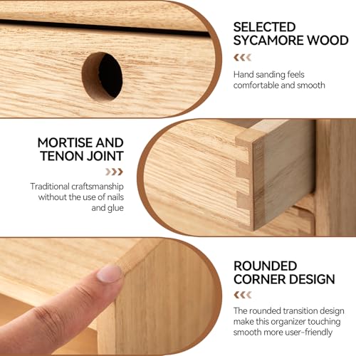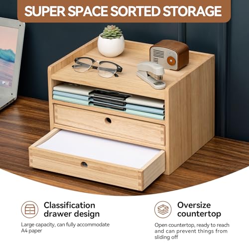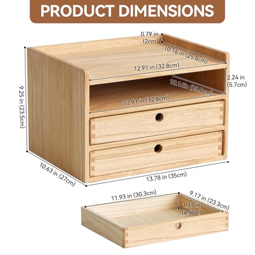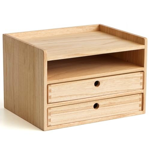 KIRIGEN - منظم سطح مكتب خشبي مع أدراج لمساحة العمل المنزلية واللوازم المكتبية، صندوق تخزين خشبي مع 2 أدراج ورف واحد من كيريجن، لون طبيعي