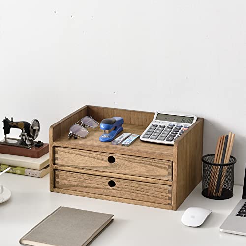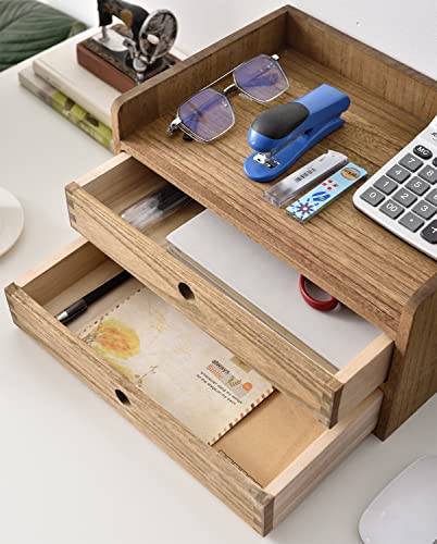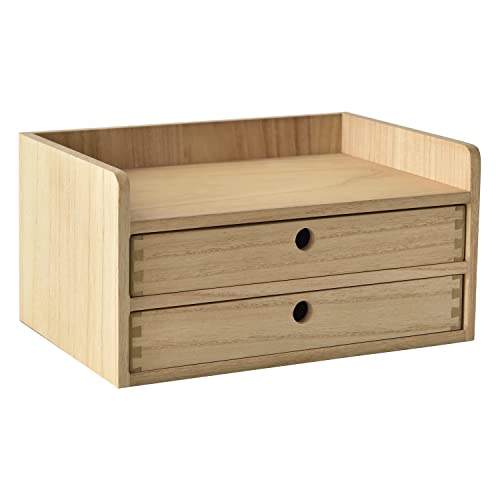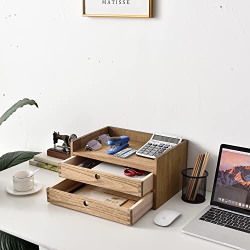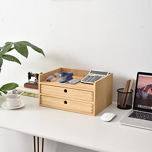 KIRIGEN - KIRIGEN Wood Desktop Organizers with with 2 Drawers and 1 Shelves Home Workspace Office Supplies Wooden Storage Box Shelf Case Hold Makeup Box Natural
