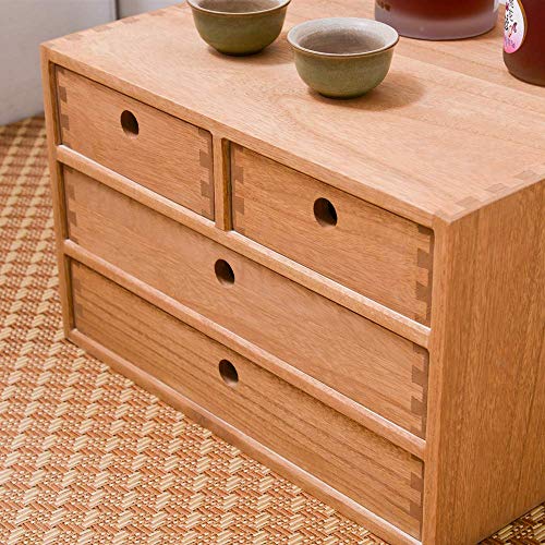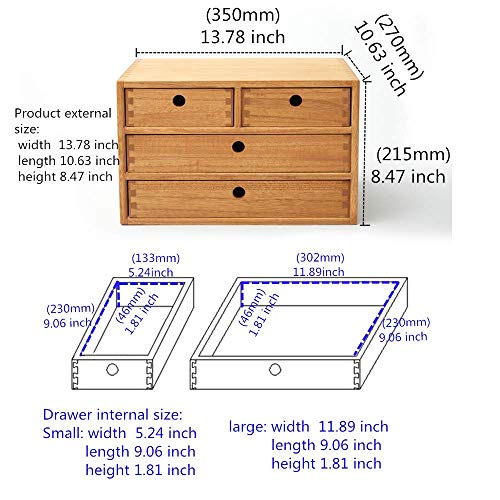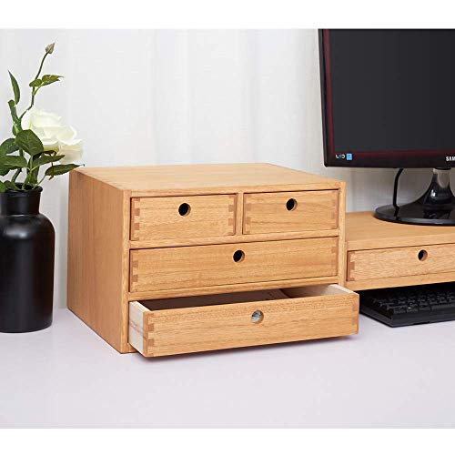 KIRIGEN - KIRIGEN Wooden Desk Organizer with Drawers Home Workplace Office Supplies Wood Storage Box Shelf Box Holder Makeup Box with 4 Drawers Natural
